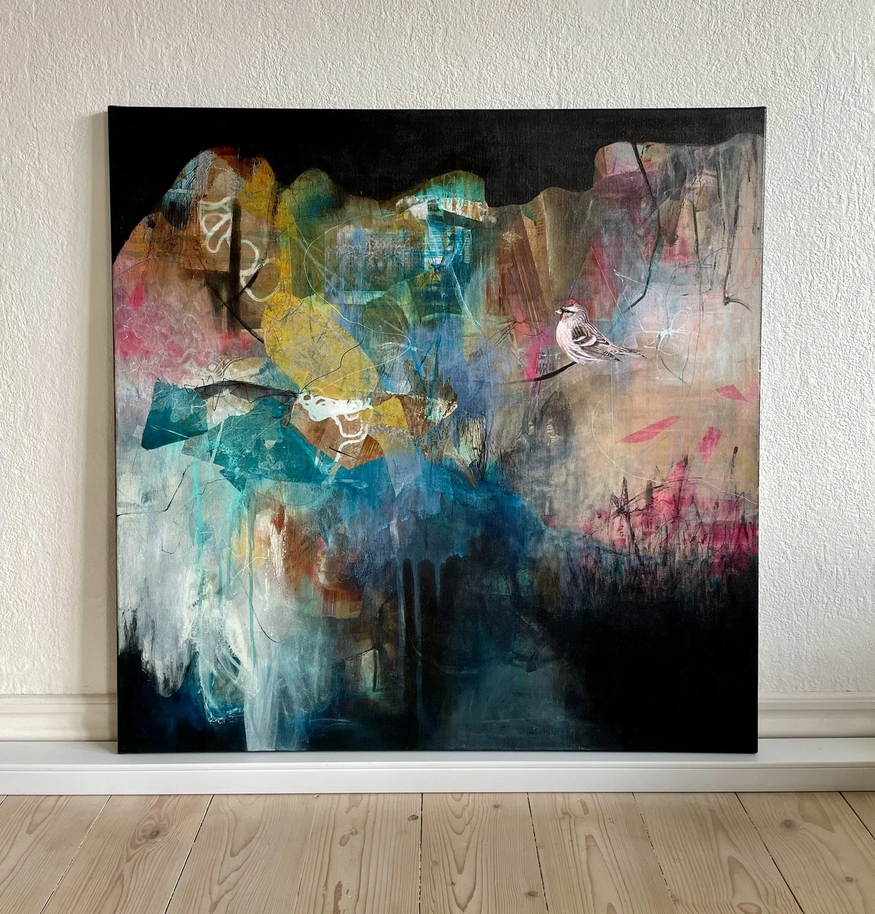Når jeg arbejder på lærred foretrækker jeg de lidt større armbevægelser. Klik ind og se værker pt. i størrelserne fra 50 x 70 cm og 80 x 80 cm.